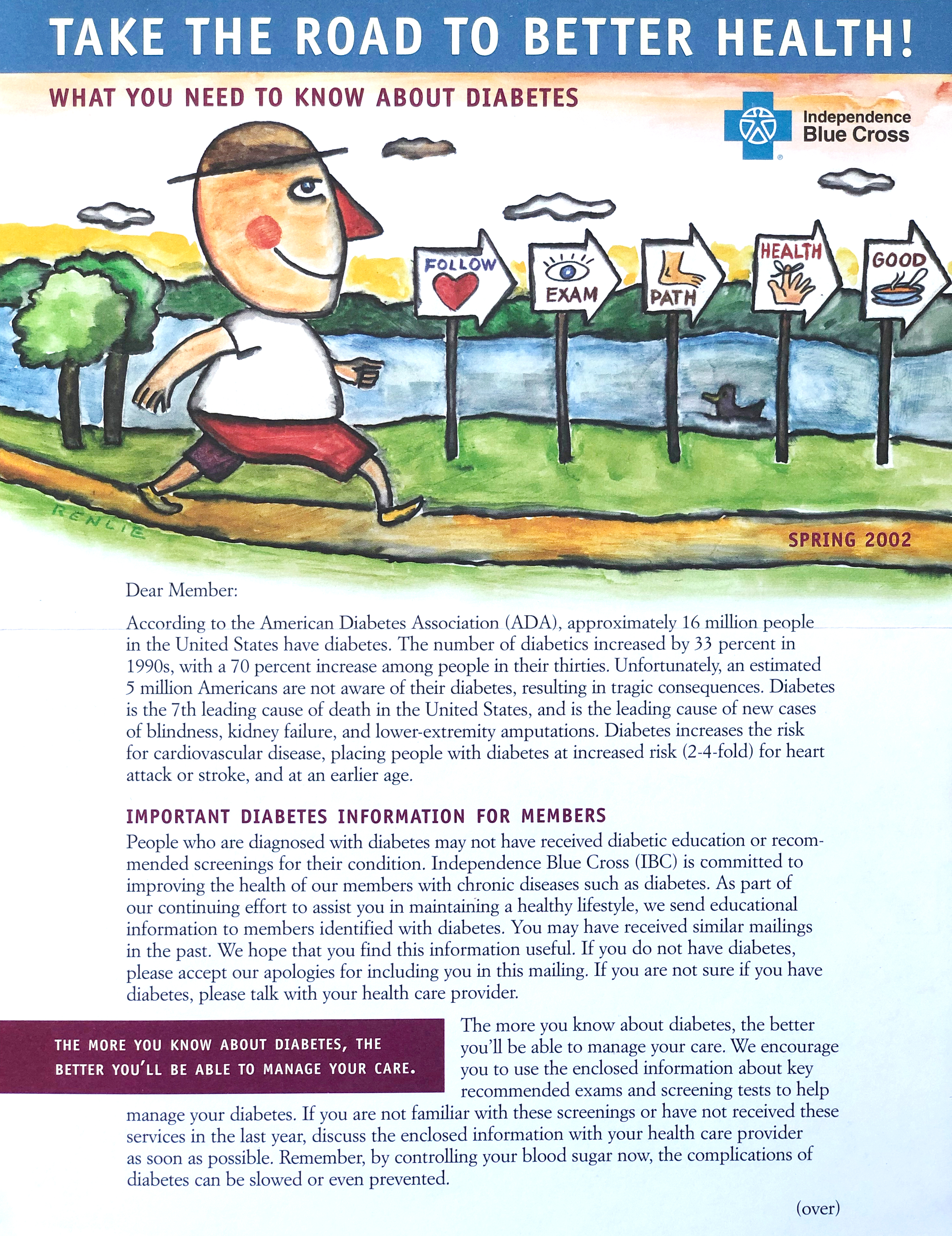 Graphic Design — I used the concept of a path with signs to help guide health information for Independence Blue Cross members .